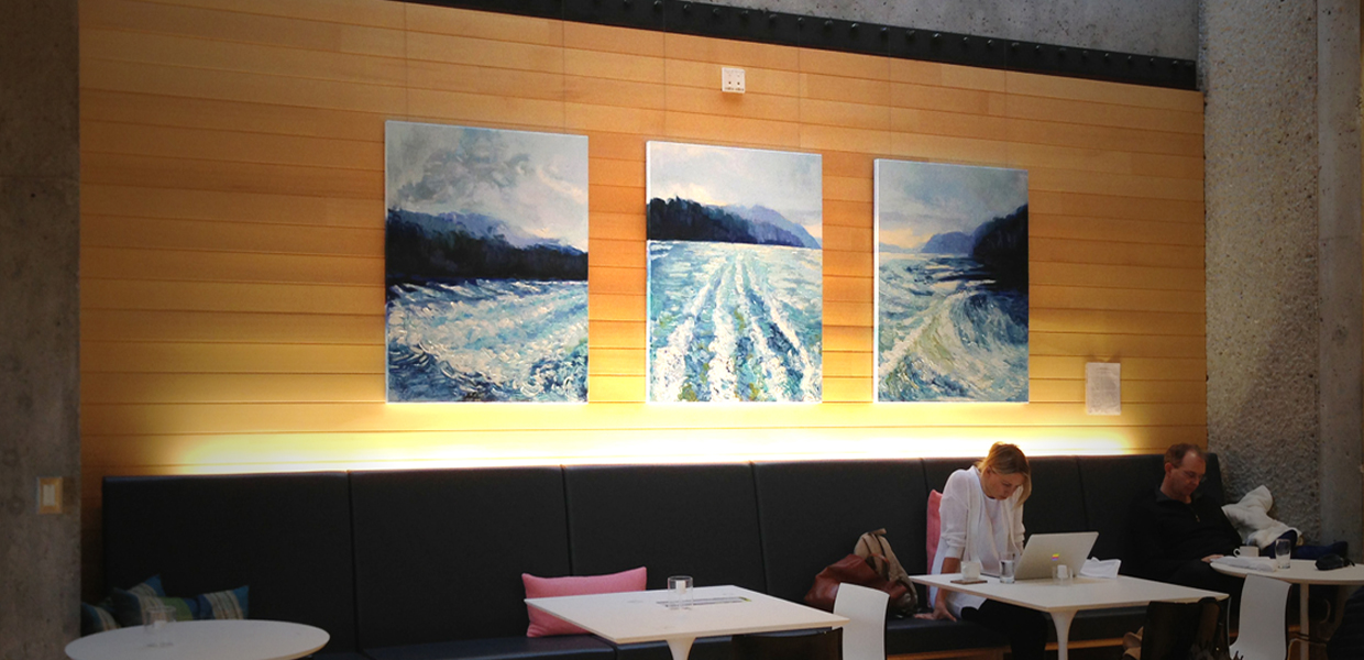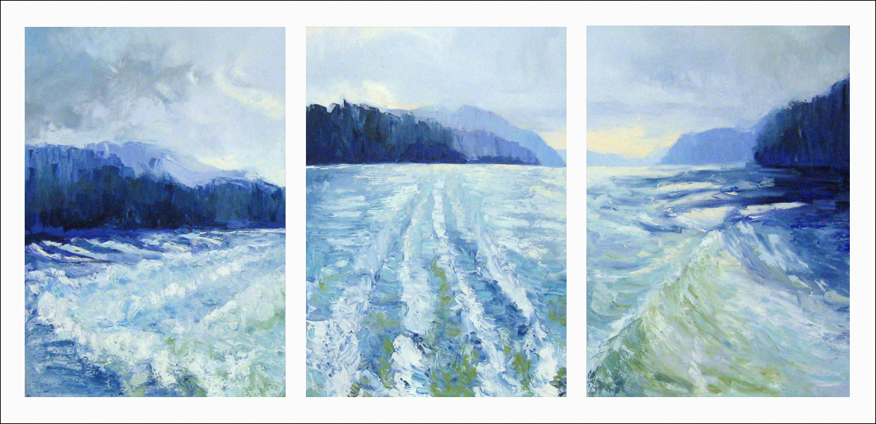 Bodies of Water: In the Wake of Being & Becoming is a diptych (oil on canvas, each panel measuring 4' x 3') that was shortlisted for an arts-based competition on the theme of water organized by the Peter Wall Institute for Advanced Studies as part of the University-Based Institute for Advanced Study (UBIAS) Conference that took place on UBC campus in September 2013.