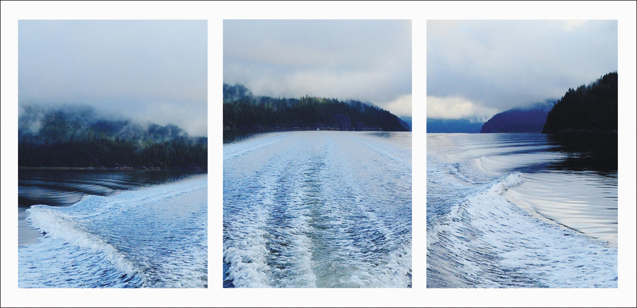 About the work: The word 'wake' has three definitions. Not only is it a noun for the track left behind a moving ship, it is also a verb meaning: 1- to become awaken (or to be roused from sleep), and 2- to hold vigil for someone who is deceased as an act of commemoration. Conceptually, it connects with Brian Massumi (2011) and Martin Heidegger's (2010) belief that the past, present, and future form a unity of relations while making reference to Deleuze and Guattari's (1987) notion of the rhizome; visually rendering the sense of aliveness that emerges in a transient, in-between space. As a moving subject on a continuous passage towards knowledge that is forever incomplete (Ellsworth, 2005), the wake has become a metaphor for my own being and becoming.