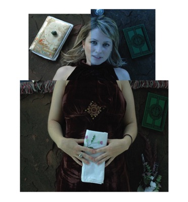 Scott works collaboratively with his subjects, asking them to bring items that are important (or sacred) to them, for which he arranges as a backdrop. Scott photographs his subjects as they are lying on the ground, thereby giving them an iconic body formation. His method includes photographing sections of the figure and then, working in a style similar to David Hockney, he later assembles utilizing computer software. The photograph(s) here is my figure as I am lying on a crypt in the Mount Royal Cemetery. I am surrounded by a small bouquet of heather, white roses, and thistles adorned with my mother’s ancestral tartan. I am holding an embroidered handkerchief while two of my journals lie nearby.