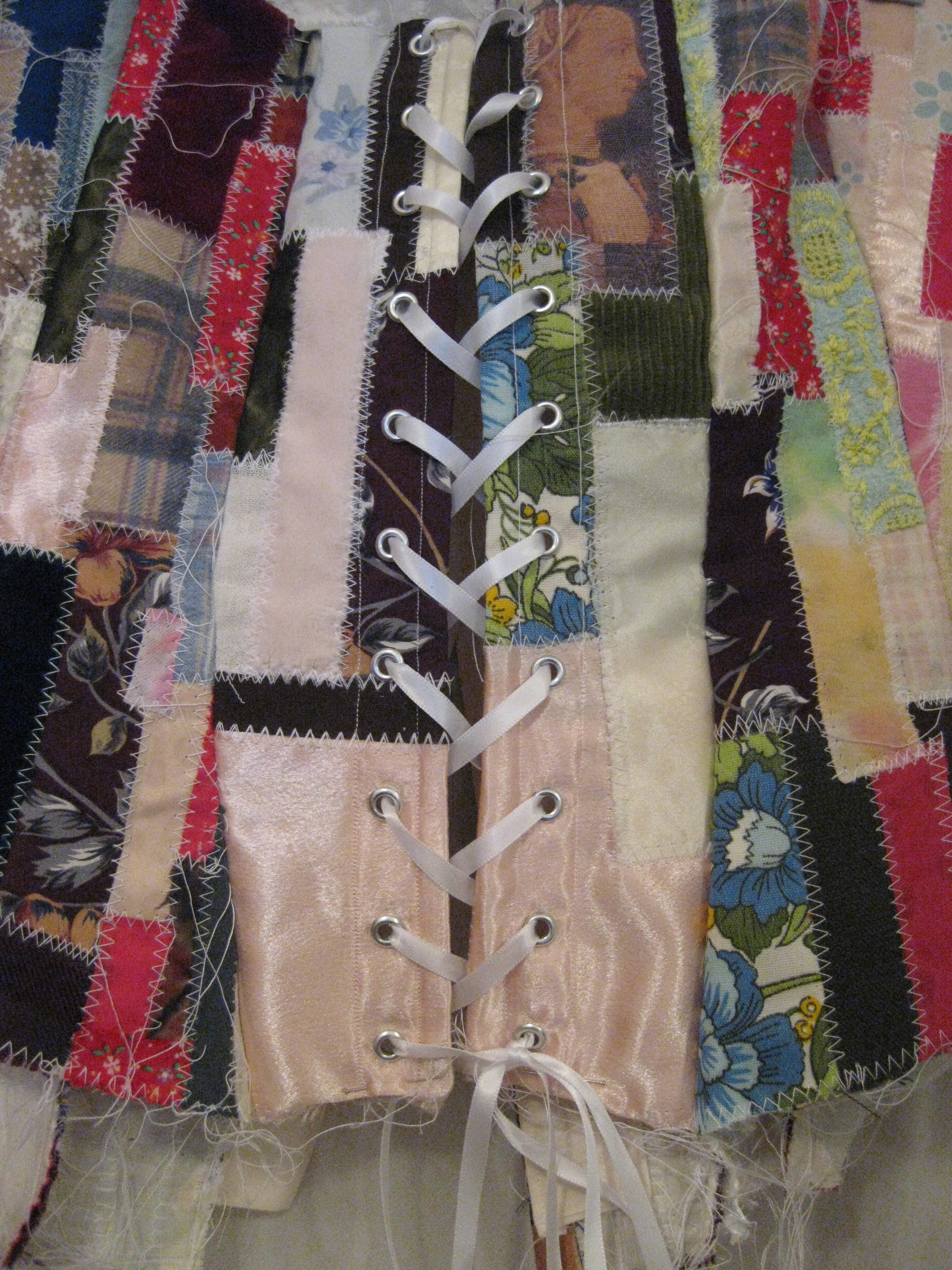 The structure of the dress is a curricular signifier for who I am — a palimpsest of the memories, thoughts, and emotions that are a part of me. I had a mother who loved me very much. Who taught me what she knew about her craft so that I too, could go on to do something great with that knowledge. During the process of making my dress, I have (re)connected with my past and with my present while acknowledging the person for which I have the potential to become. As such, my dress will forever be incomplete. I will continue to add pieces of fabric from my future experiences and from my family’s future experiences. It will continue to grow as I continue to grow. It will change as I change.